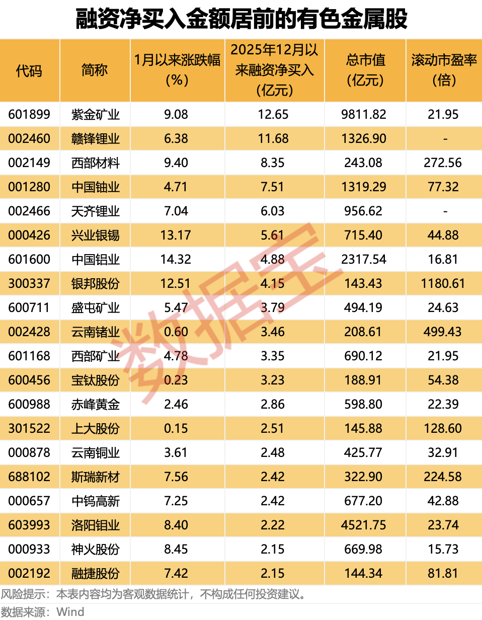 6只有色金属股 获融资净买入均超5亿元