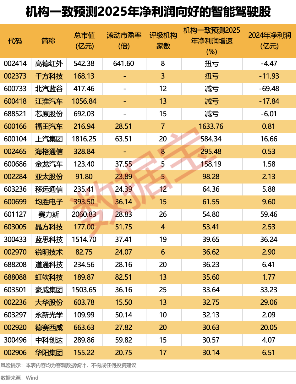 机构一致预测2025年净利润向好的智能驾驶股一览股市开户网上开户流程
